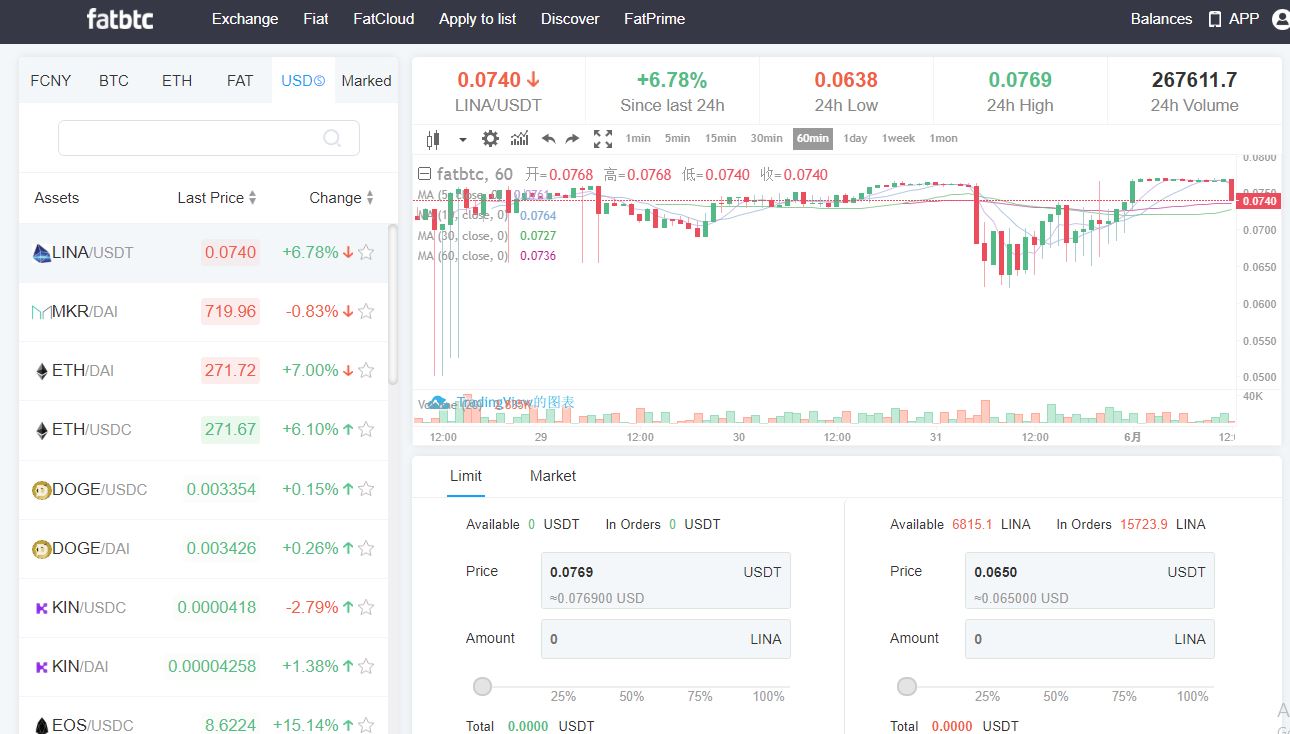Hình 4: Sàn Fatbtc list LINA