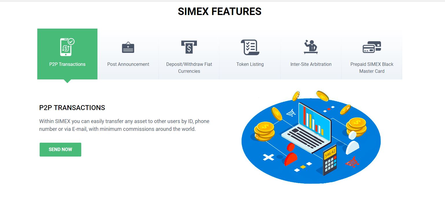 Simex là sàn giao dịch tiền mã hóa và đầu tư cổ phiếu được thành lập từ năm 2014 có trụ sở chính tại Nga. Sàn Simex là sàn đầu tiên tại Nga đăng ký và được phép hoạt động tại thị trường Mỹ. Là sàn uy tính thuộc top đầu của Nga và xếp hạng 37 Coinmarrketcap.